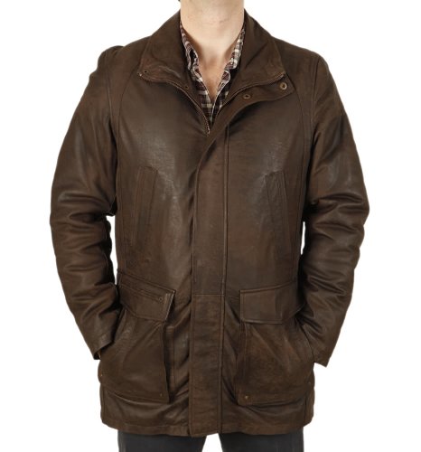 Best Seller! Simons Leather Gents 3/4 Length Khaki "Buff" Leather Coat, Size - X Large (44") Review